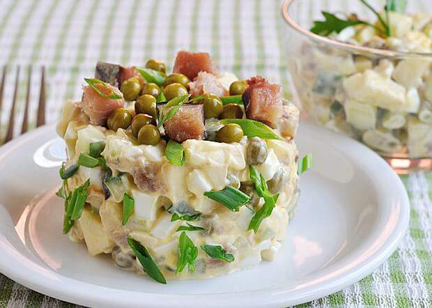 Майонез для салата подберите жирный, не ниже 50%. А еще лучше, если для этого случая приготовите хороший домашний майонез.