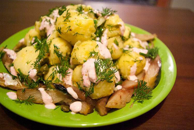 Готовим теплый картофельный салат с рыбой от Джейми Оливера