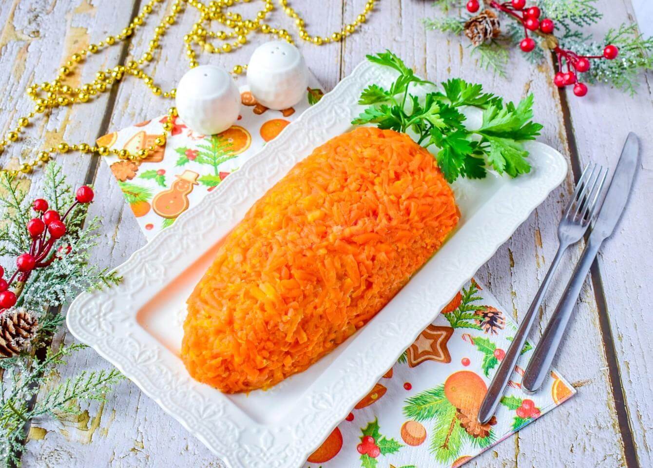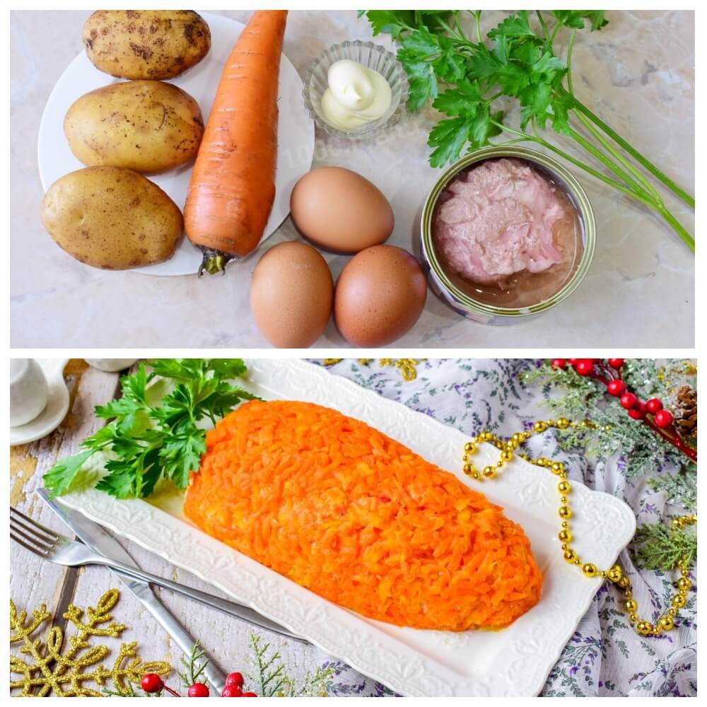 Готовим новогодний салат «Морковка» с тунцом