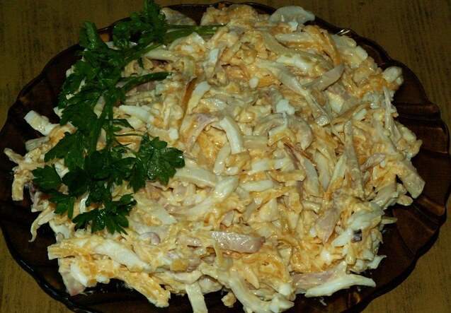Готовим салат с кальмарами и яйцом