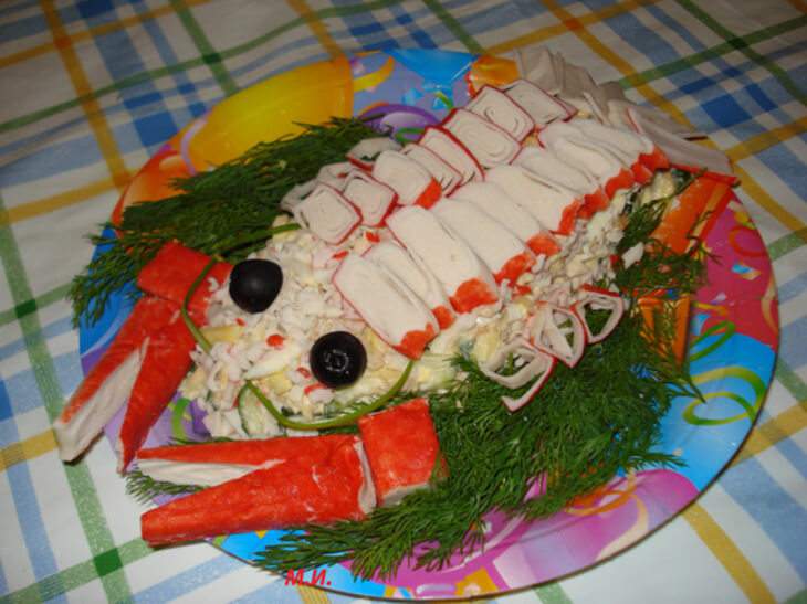 Готовим новогодний салат «Крабик» с крабовыми палочками