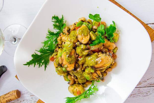 Готовим салат из мидий с авокадо и фасолью