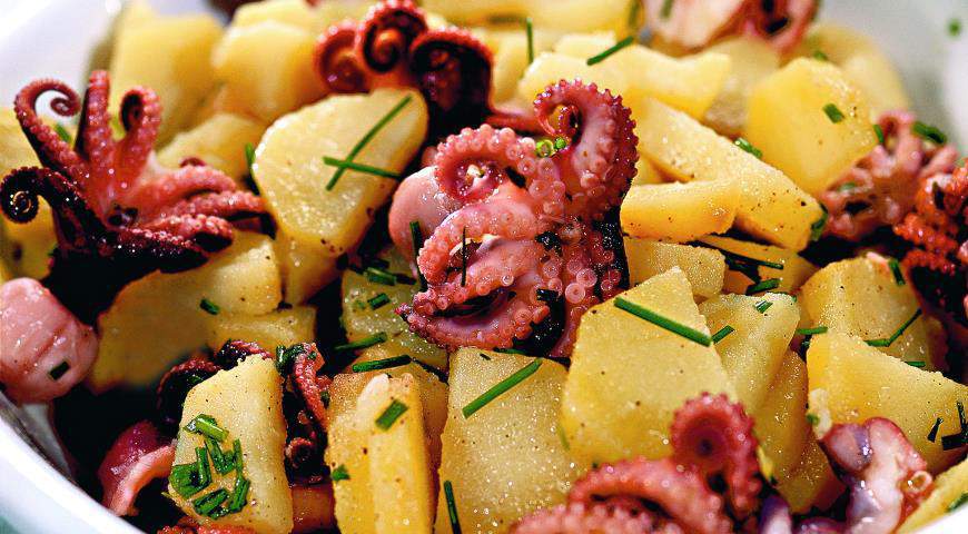 Готовим картофельный салат с маринованными осьминогами