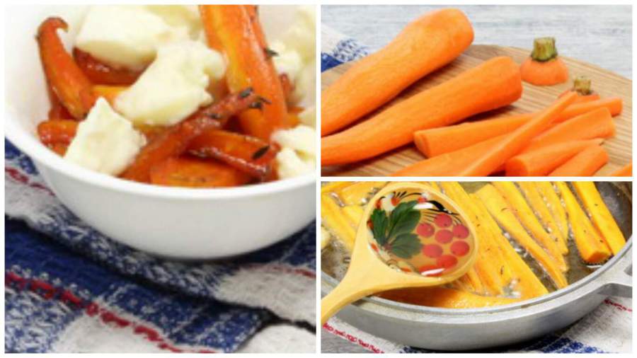 5. Теперь добавьте в сковороду с морковью мед, достаньте и выбросьте зубчики чеснока. Карамелизируйте морковь до появления едва глянцевой корочки.