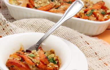 8. Достаньте теплый салат из духовки и посыпьте его тыквенными семечками. Подавайте морковный салат с моцареллой сразу же.