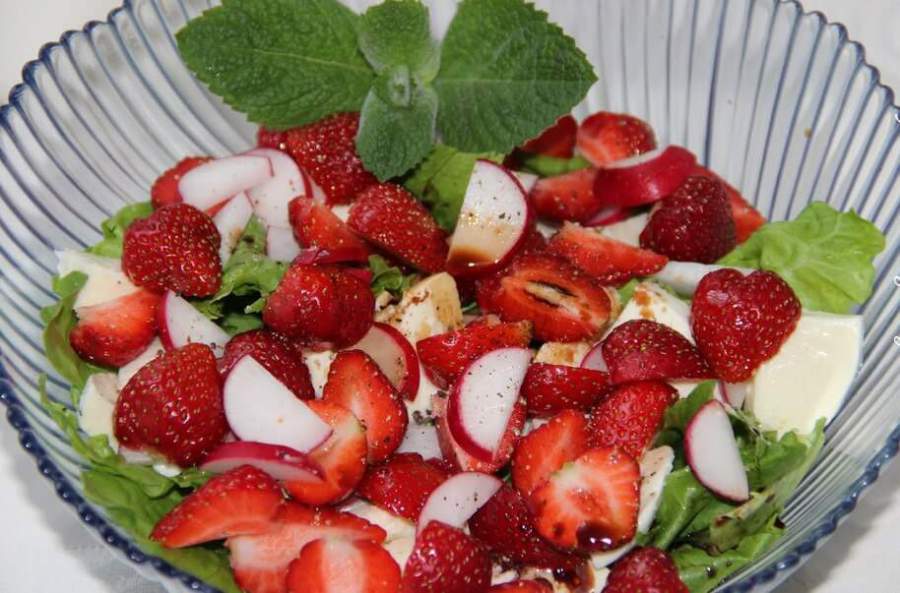 Готовим салат с клубникой, моцареллой и бальзамиком