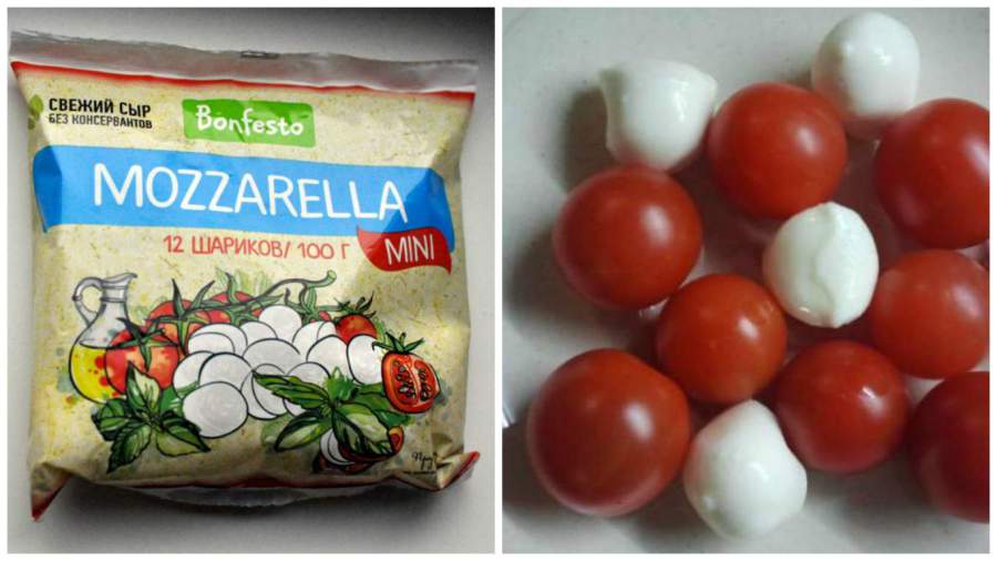 Нежные мини-шарики вкусного и полезного сыра моцарелла поступают в продажу небольшими упаковками, что позволяет, открыв ее, использовать сразу в салат.