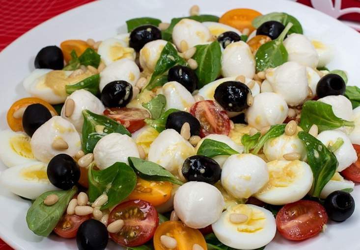 Готовим салат с перепелиными яйцами и сыром моцарелла