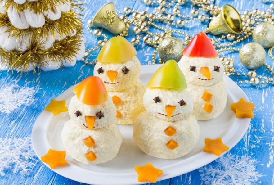 Зима богата веселыми незабываемыми праздниками, меню завсегда продумывается так, чтобы ввести в него не только вкусные, но и красиво поданные блюда. Оформление в виде снеговиков – замечательная идея для новогоднего и просто зимнего салата. Забавным снеговикам будут рады гости за праздничным столом.