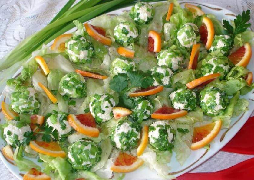 Готовим весенний салат с зеленью, творожными шариками и апельсинами
