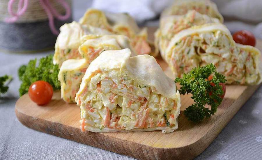 Плавленые сырки – отличная основа для салатов и закусок. Если вам нужно вкусно и недорого накормить семью или внести аппетитное разнообразие на праздничный стол, готовьте салат из плавленых сырков. Предлагаем вашему вниманию интересный рецепт салата из плавленых сырков с корейской морковью в лаваше.