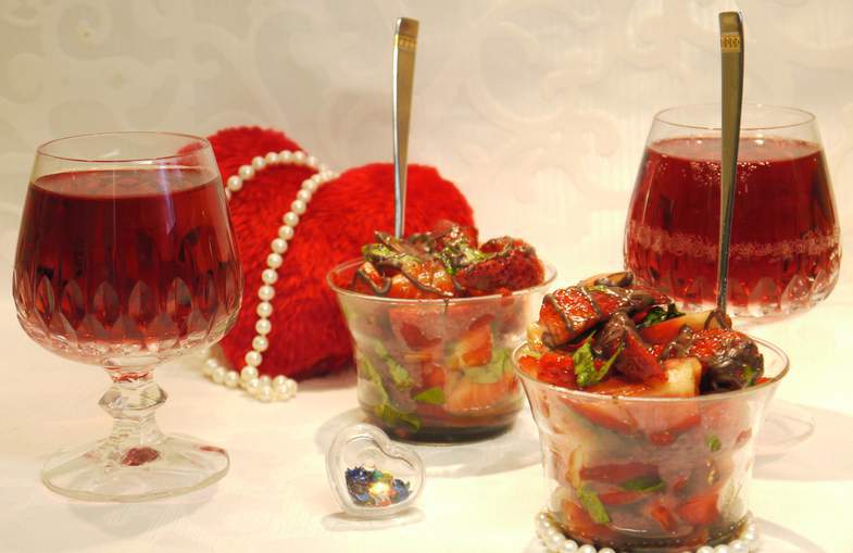 8. Подайте коктейль и ягодный десерт в качестве пикантного клубничного салата-аперитива ко Дню Влюбленных.